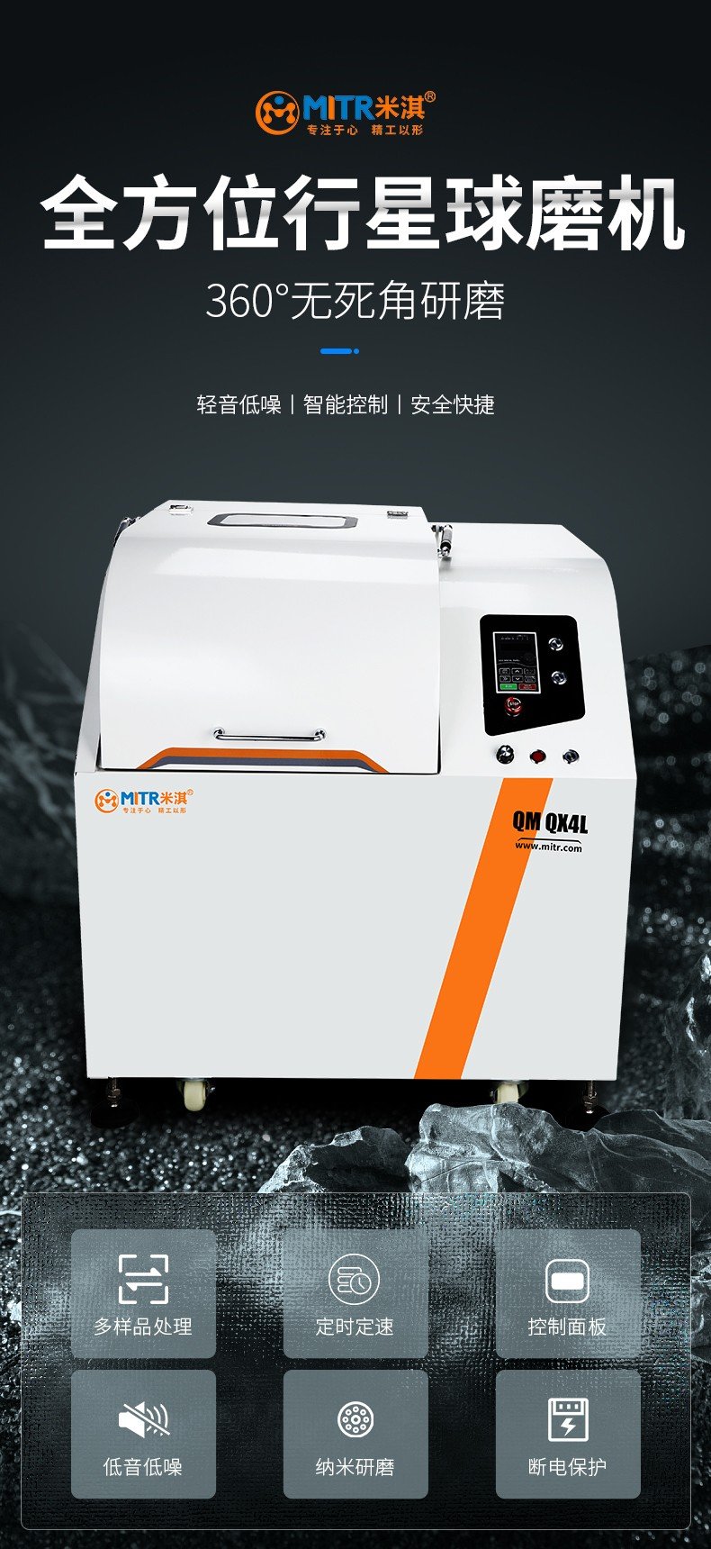 全方位行星式球磨机适合坚硬、中等硬度、脆性和纤维材料的湿法及干法粉碎和细化,出样细度可小于100nm,亦可用于悬浮液中固体的研磨、样品混合和均一化处理以及金属合金化等,均可达到优良出众的效果。
